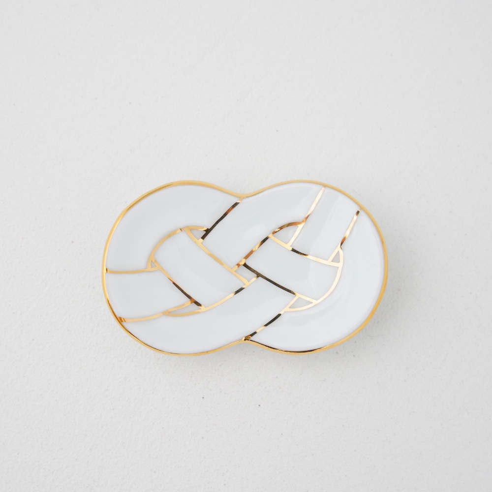 おめでたい意味を持つあわじ結びをモチーフにした、上品な佇まいの箸置き。