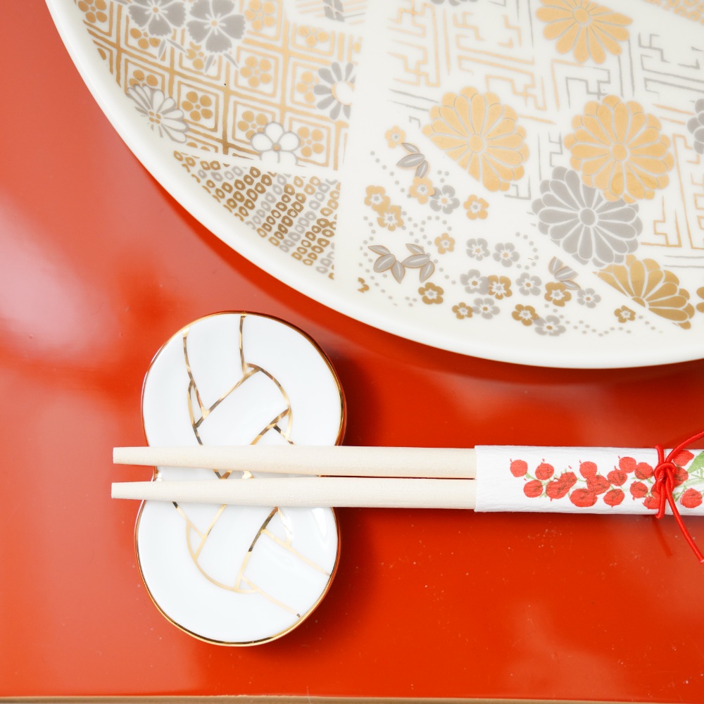 結び目には「末永く続くご縁」「固く結ばれる幸せ」といった願いが込められており、お正月やお祝いの席、おもてなしの食卓にぴったりのデザインです。