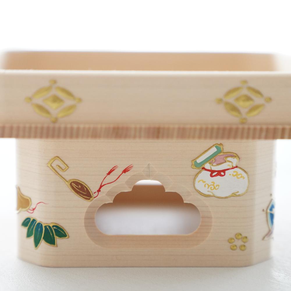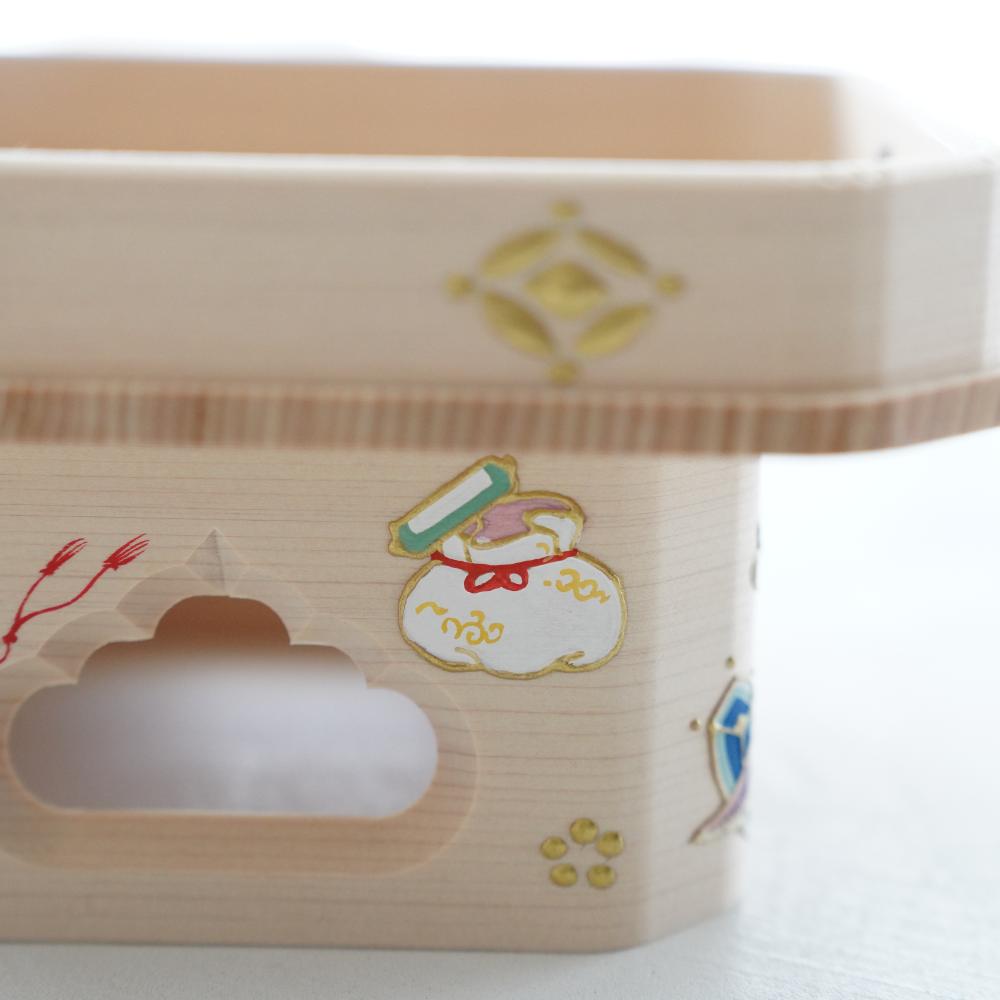 彩色師による繊細な手描きで、吉祥文様「宝尽くし」をあしらった、