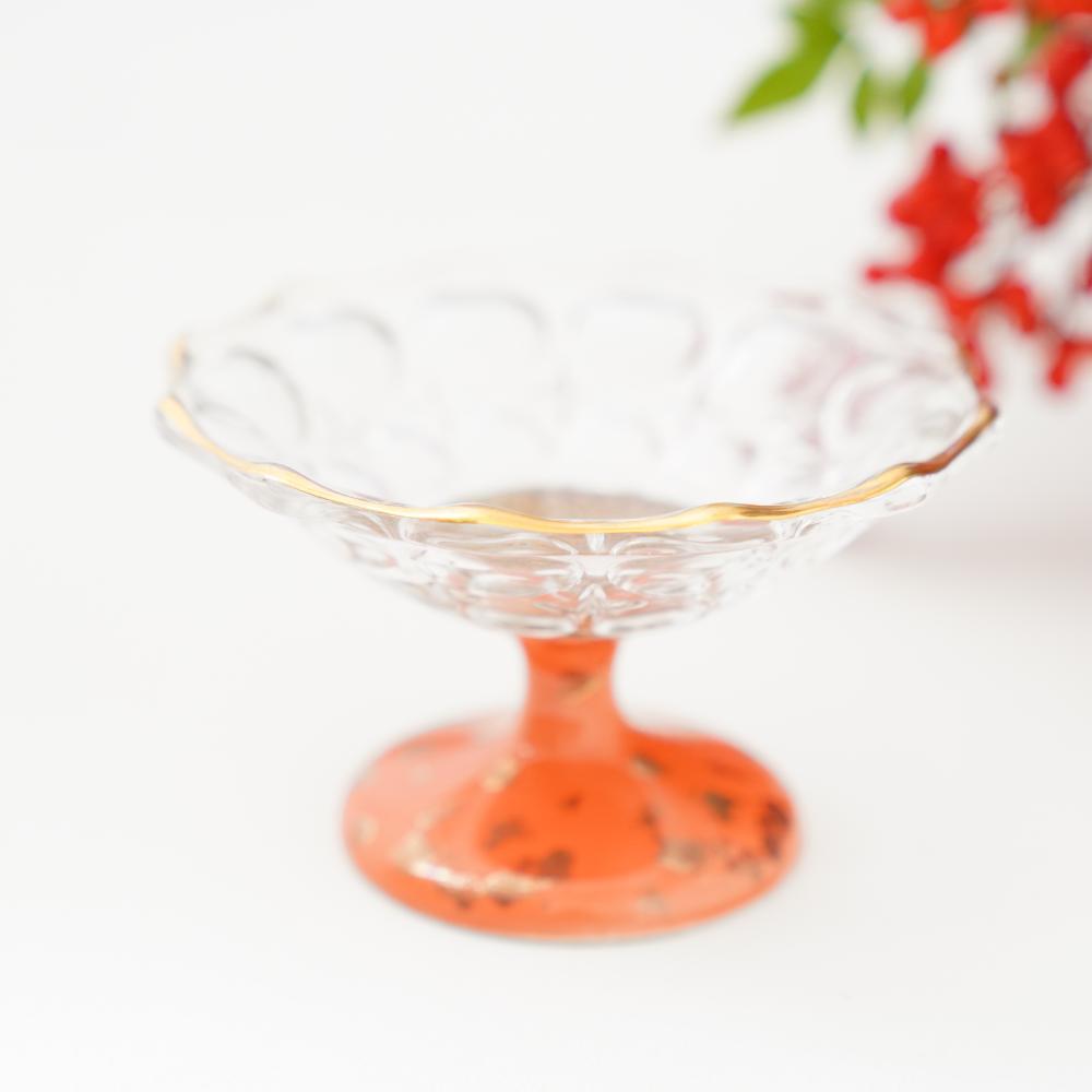 艶やかなオレンジ釉が目を引く、涼感あふれるガラスの高台鉢。