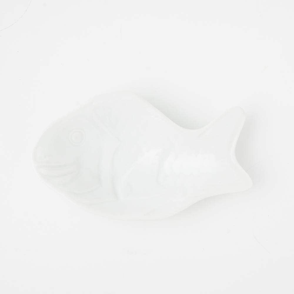かわいらしい鯛のかたちに、やさしい白の釉薬をまとわせた、 上品で使い勝手のよいおてもと皿です。