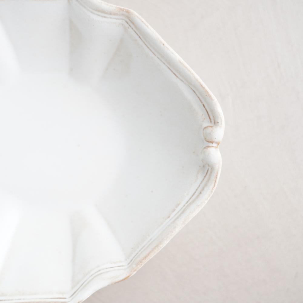 アンティークの趣ただよう 益子焼の菱鉢 益子焼の職人が一つ一つ手づくりで仕上げた「ひし鉢 kinari」は、 ナチュラルな生成り色が魅力の中鉢です。 ヨーロッパのアンティークプレートを思わせる、 品のある佇まいが素敵な逸品です。 さりげない存在感とクラシカルな雰囲気を演出。 パスタやピラフ、冷やし中華などのメイン料理から、 煮物やサラダの盛り鉢としても幅広く使えます。 エスニックや洋風メニューとも相性がよく、 和と洋の枠を超えたテーブルコーディネートを楽しめます。 使い込むほどに味わいが深まる、長く愛せる器です。 以下のような注意点がございます。 ※釉薬が垂れたように作られています。 ※食器の形状や色合い(釉薬の濃淡、色ムラ)には個体差がございます。 ※土の表情があらわれたり、素地が見える風合いです。 上記のような事象での返品交換はお断りいたします。 ※オーブン・直火での使用は、破損・怪我の原因になります。絶対になさらないでください。
