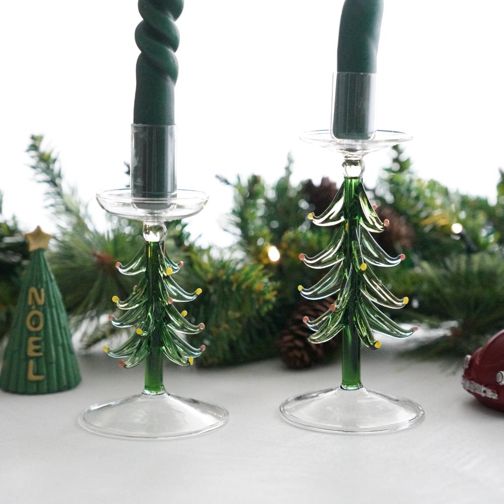 繊細なガラスでつくられたツリー型のキャンドルホルダー。
