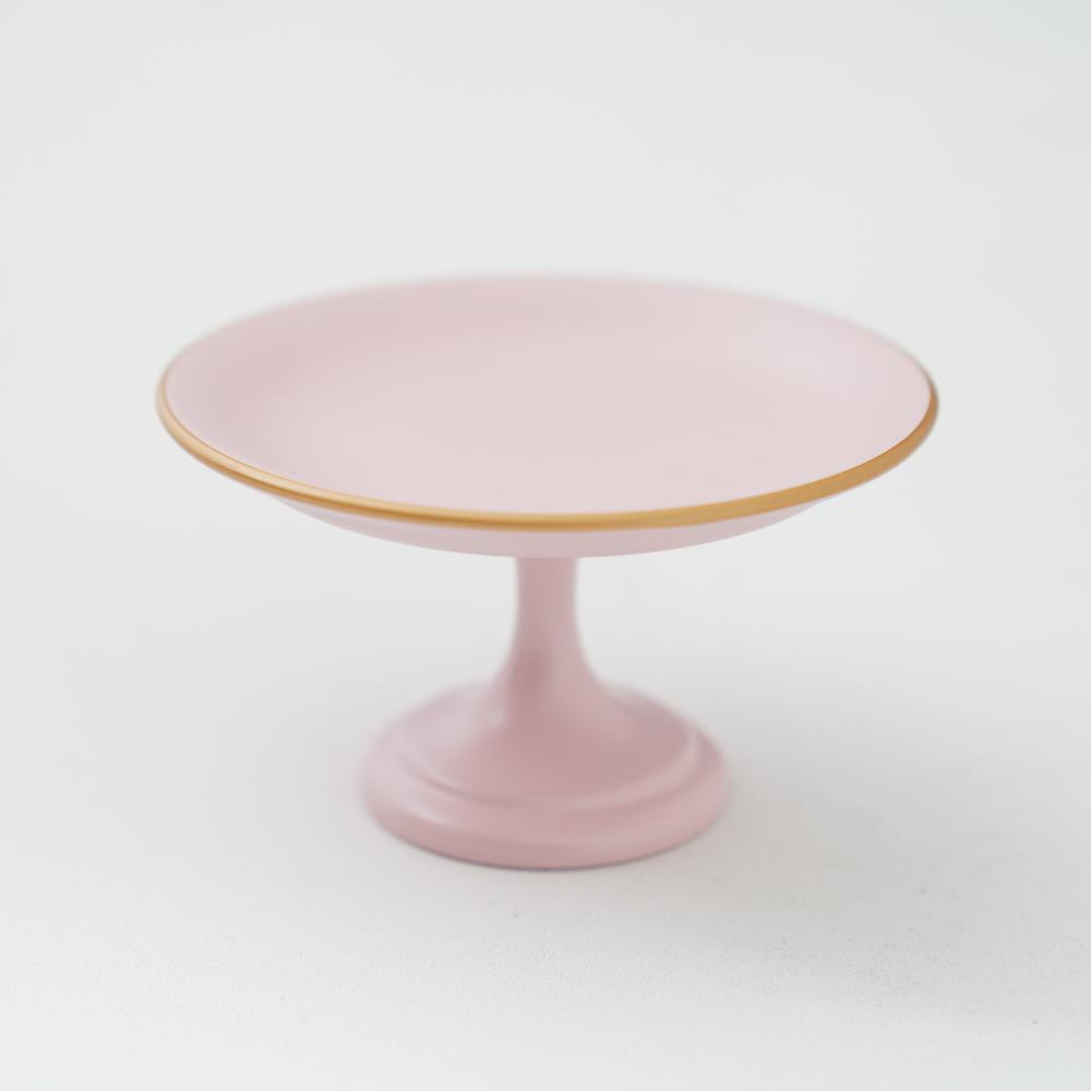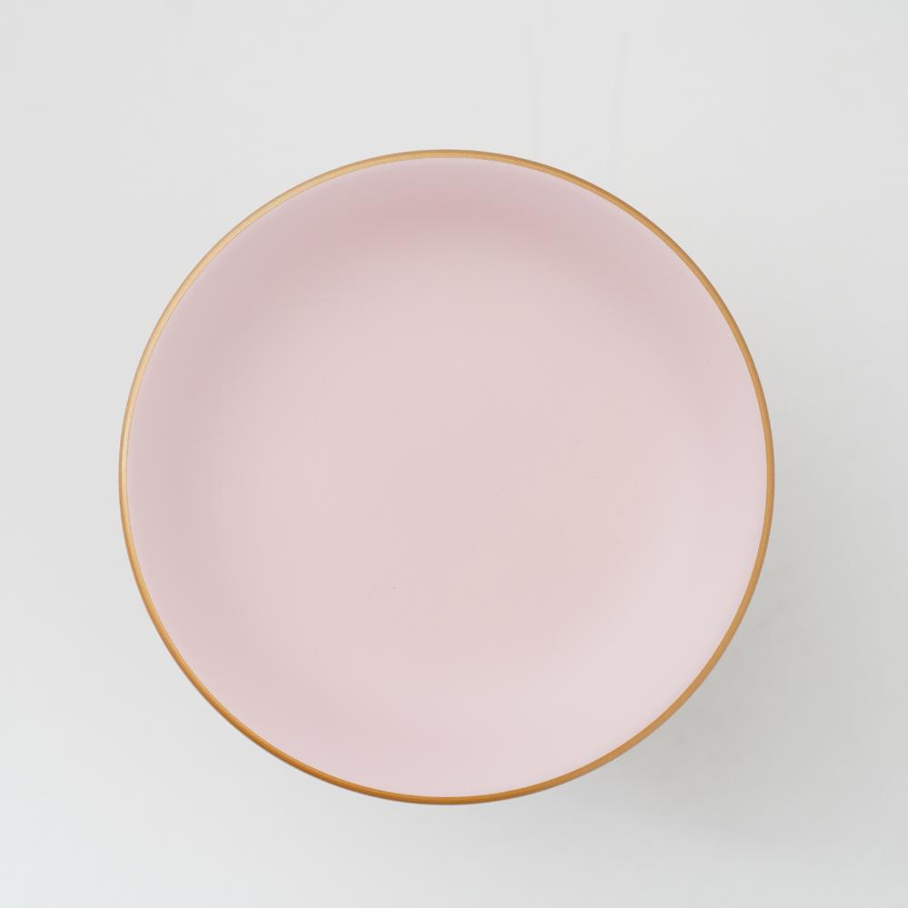 淡くやさしいペールピンクの色合いに、縁を彩る金が上品に映える、4寸サイズの高月盛皿です。