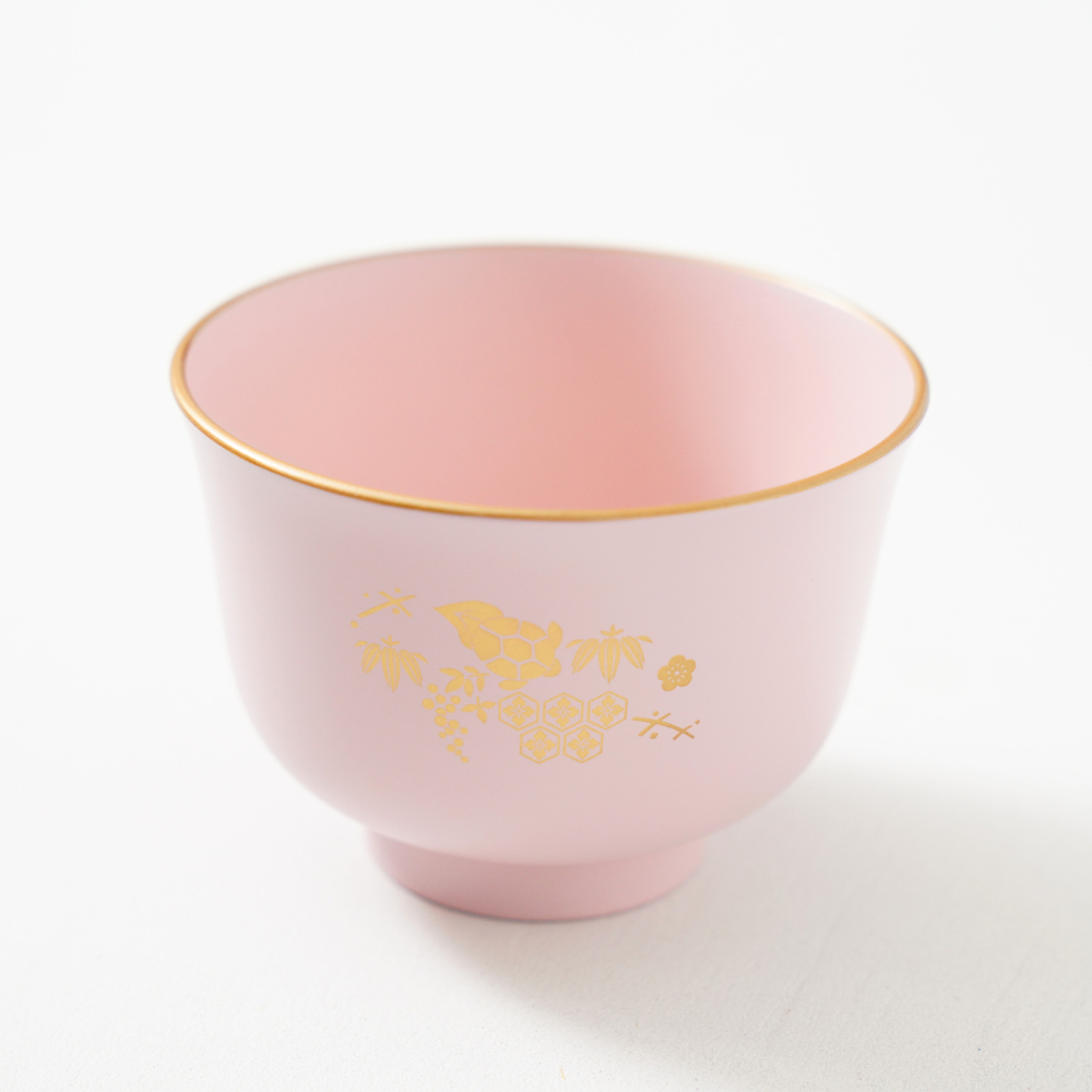 やさしいペールピンクの色合いに金彩が映える汁椀。