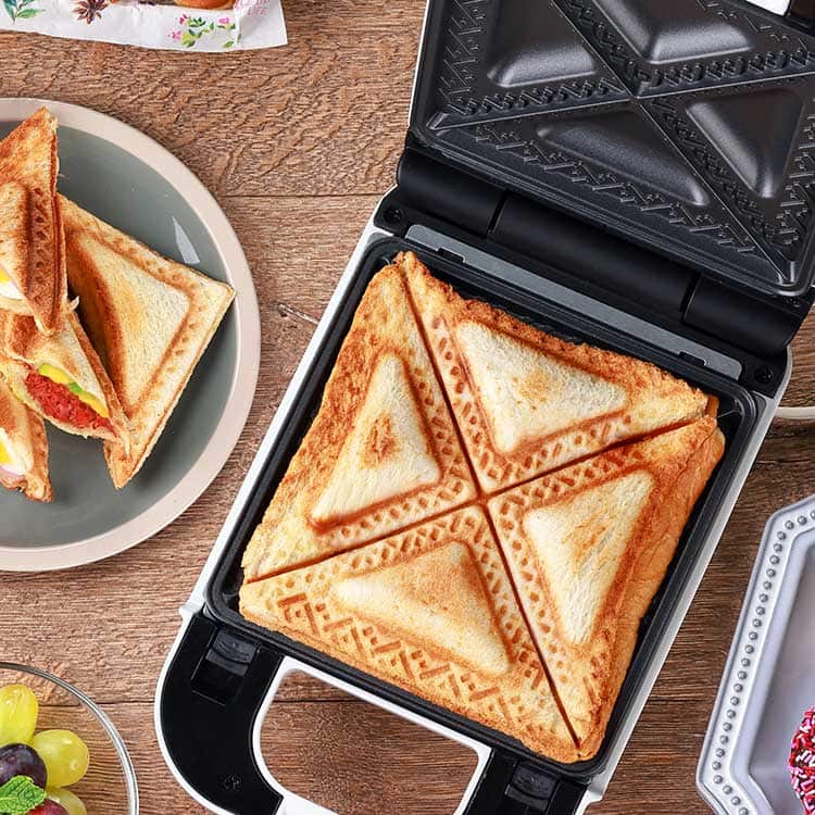 生地や具材をのせてフタを閉めるだけなので、短時間で手軽においしい朝食やおやつが完成します。